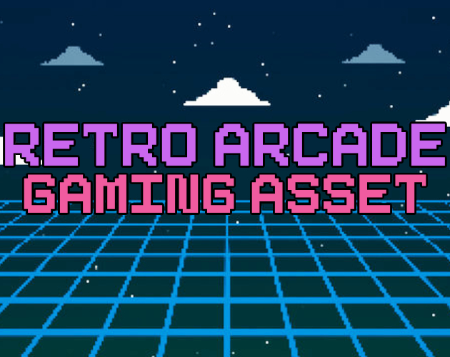 Includes gaming assets of a retro-inspired game assets reminiscent of classic arcade games.